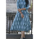 The Pure Cotton Ikkat Handblock Printed Prestitched Dress is a ready-to-wear garment crafted from pure cotton fabric. It features Ikkat patterns created using the handblock printing technique, showcasing traditional Indian textile art.