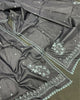 Luminous Silk Linen Embroidered Off White Saree