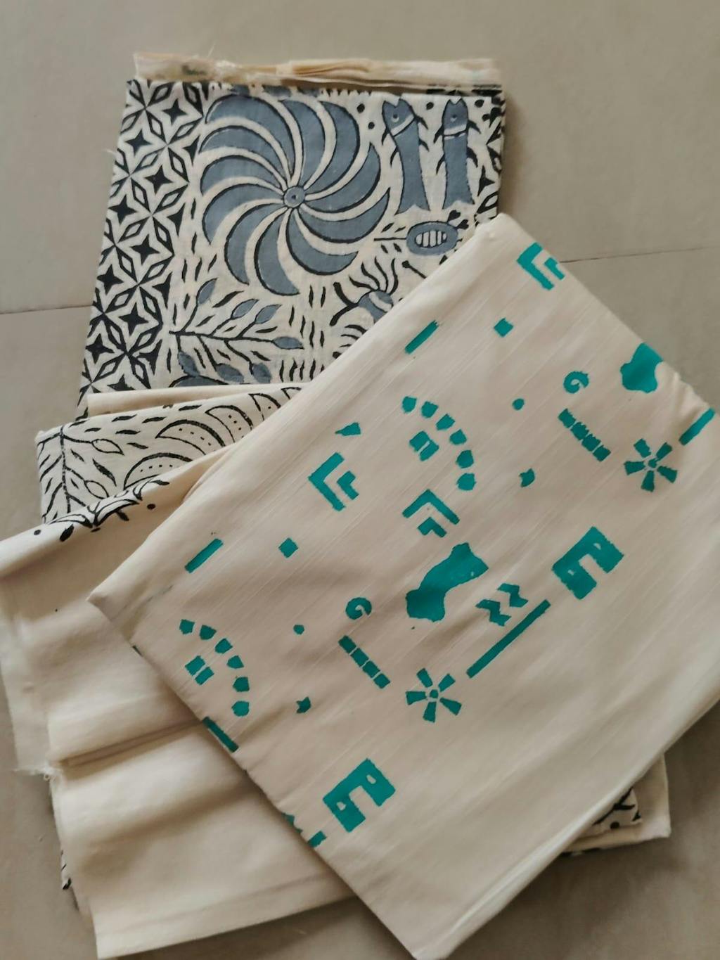 "Printed" refers to a fabric or material that has designs, patterns, or images applied to its surface using various techniques such as screen printing, digital printing, or block printing.