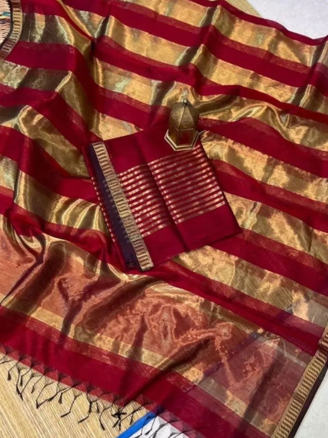 **Maheshwari Silk** is a traditional handwoven fabric from Maheshwar, Madhya Pradesh, known for its luxurious texture and lightweight feel. It blends silk and cotton, offering both shine and comfort. Characterized by intricate zari borders, reversible designs, and geometric or floral motifs, Maheshwari Silk sarees exude timeless grace and royal elegance.