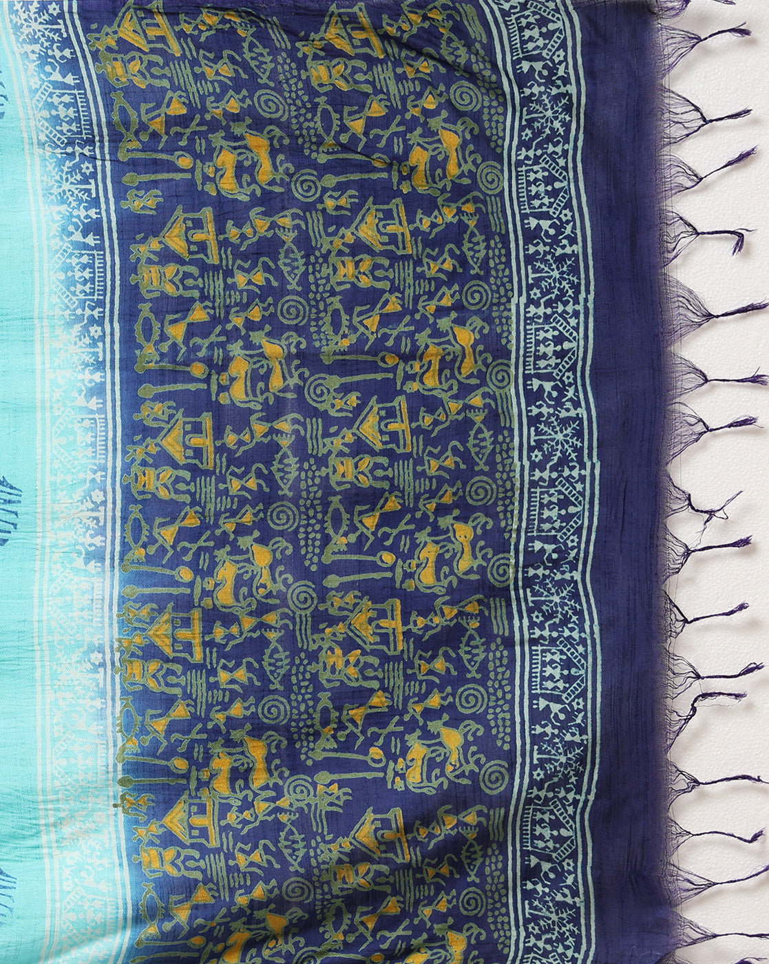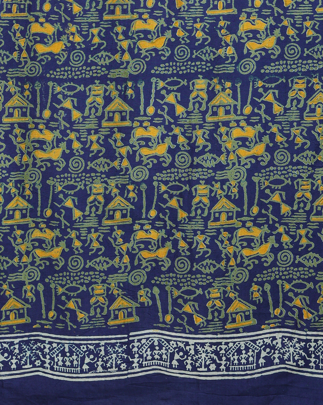 Lustrous Maheshwari Pure Silk Black & Indigo Blockprint Saree (LAST PIECE)