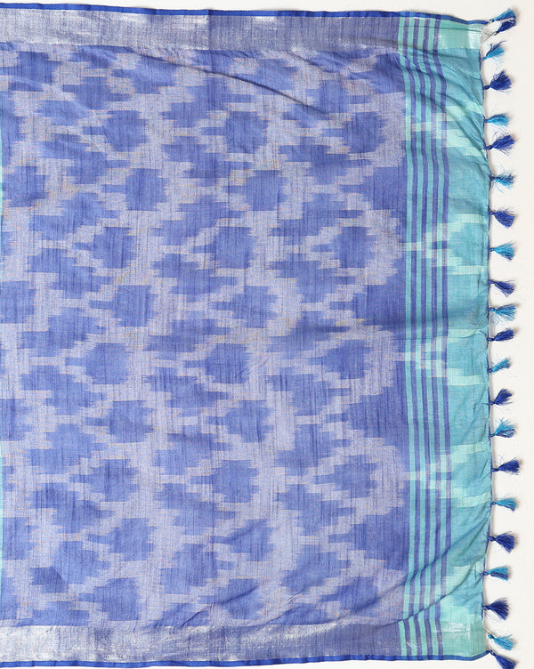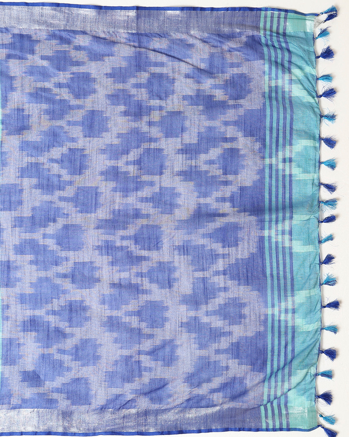 Crisp Ikkat Slub Linen Handloom Blue Saree
