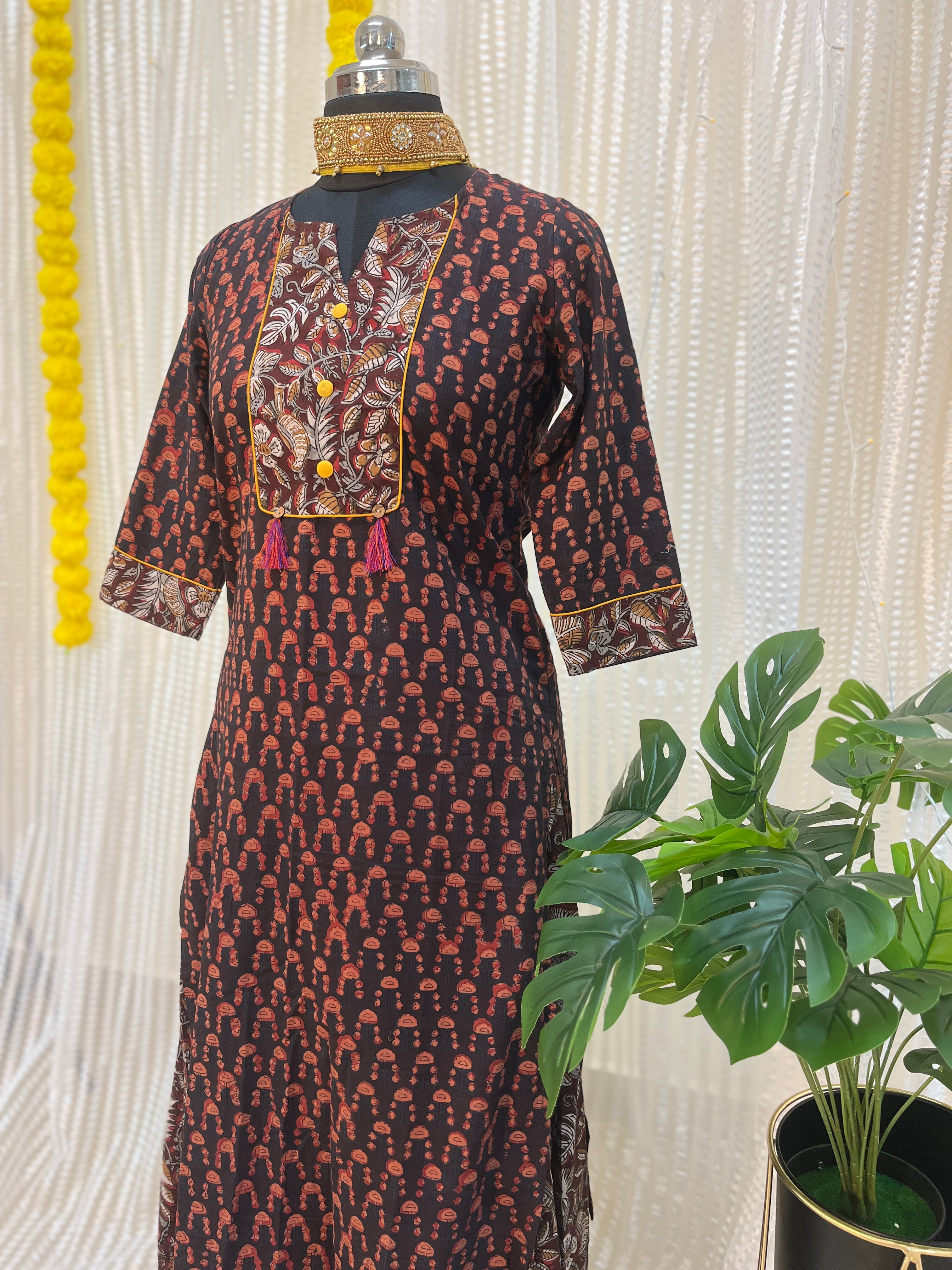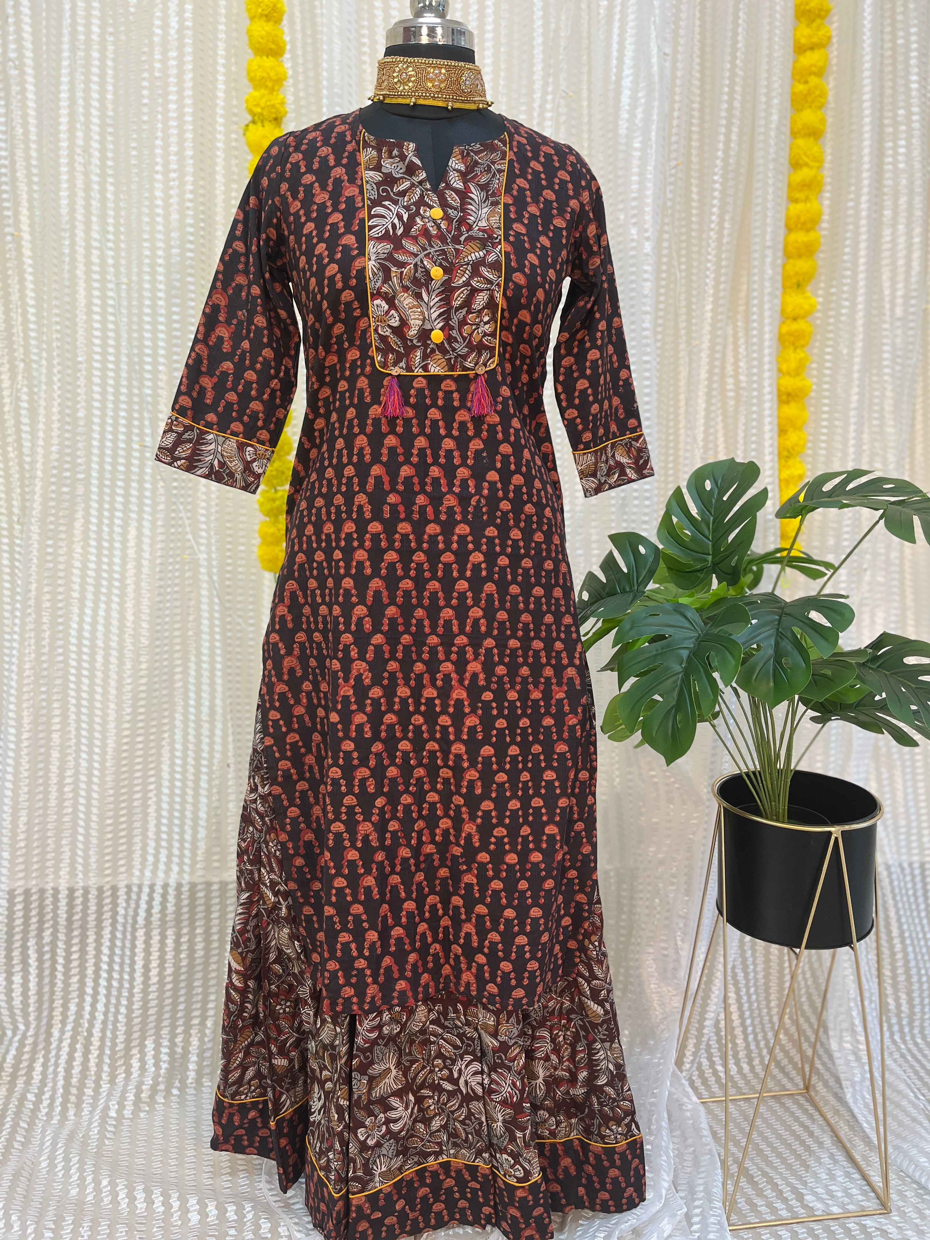 A Cotton Skirt/Lehenga and Kurti Set Handblock Print is a traditional Indian outfit consisting of a cotton skirt or lehenga (long skirt) paired with a matching kurti (top), both featuring intricate handblock printing. It's a popular ensemble for festive and cultural occasions.