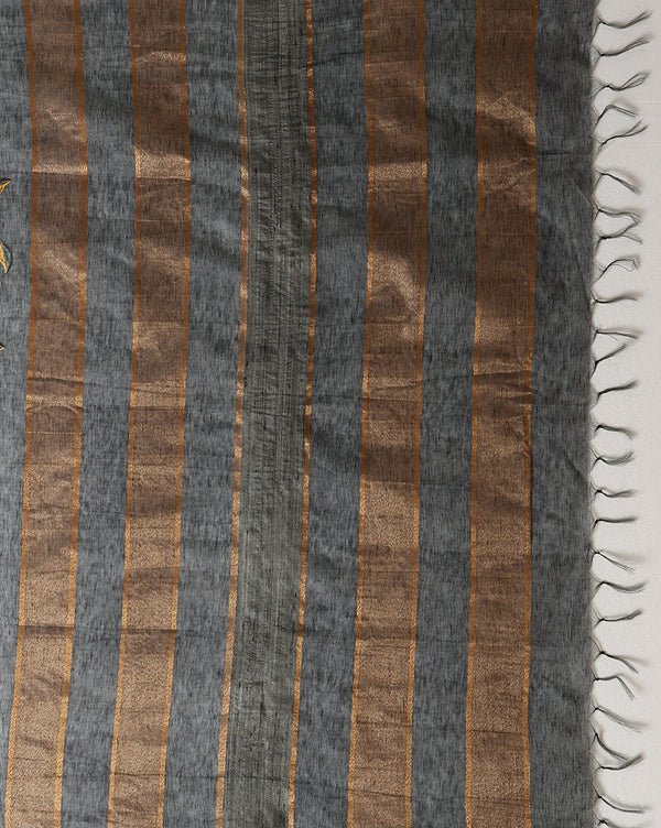 Zari Sutra Maheshwari Silk Charcoal Gray