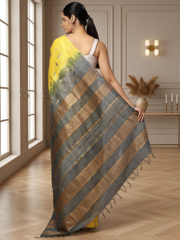 Lively Eri Tussar Silk Embroidered Yellow Saree
