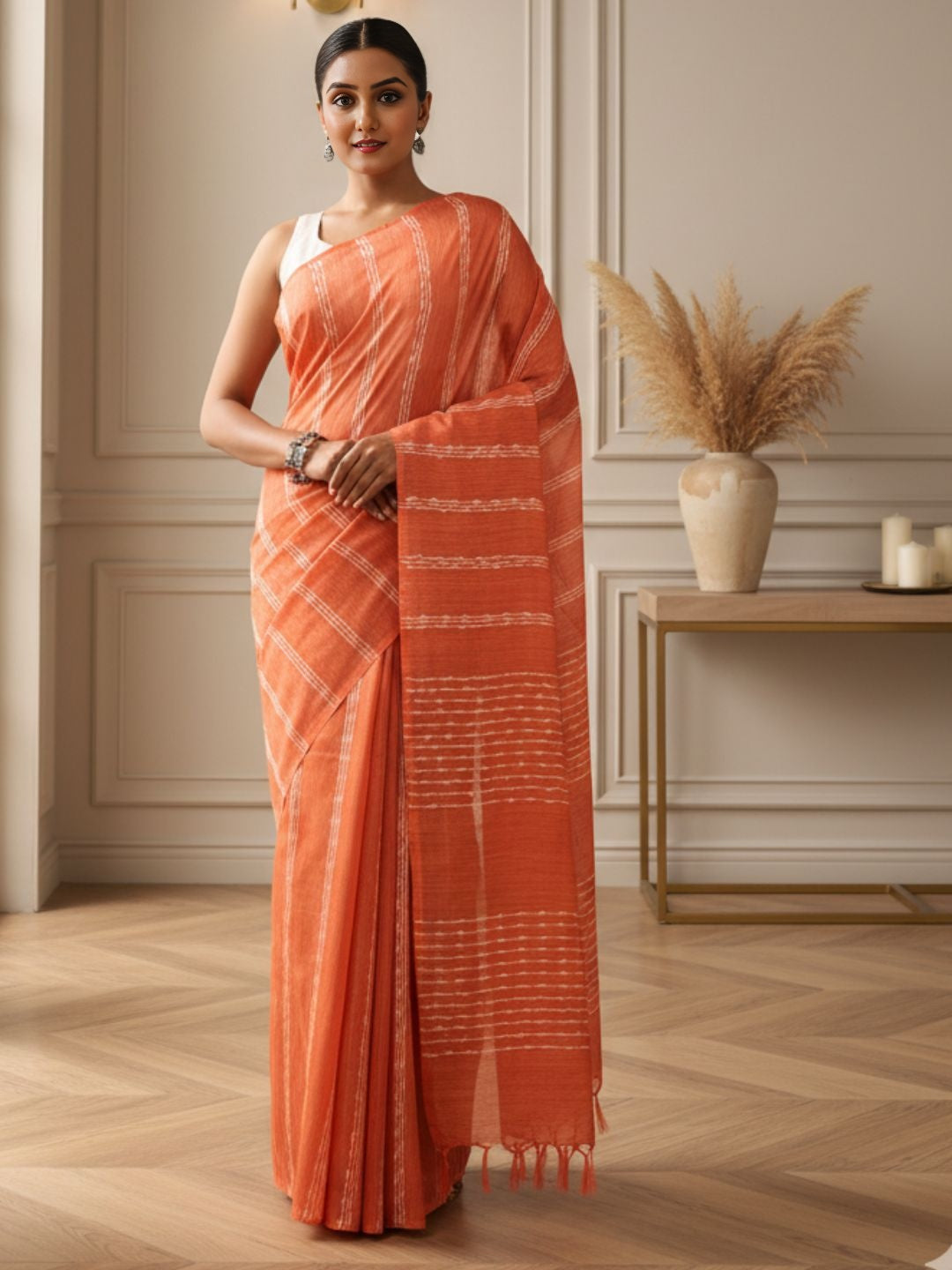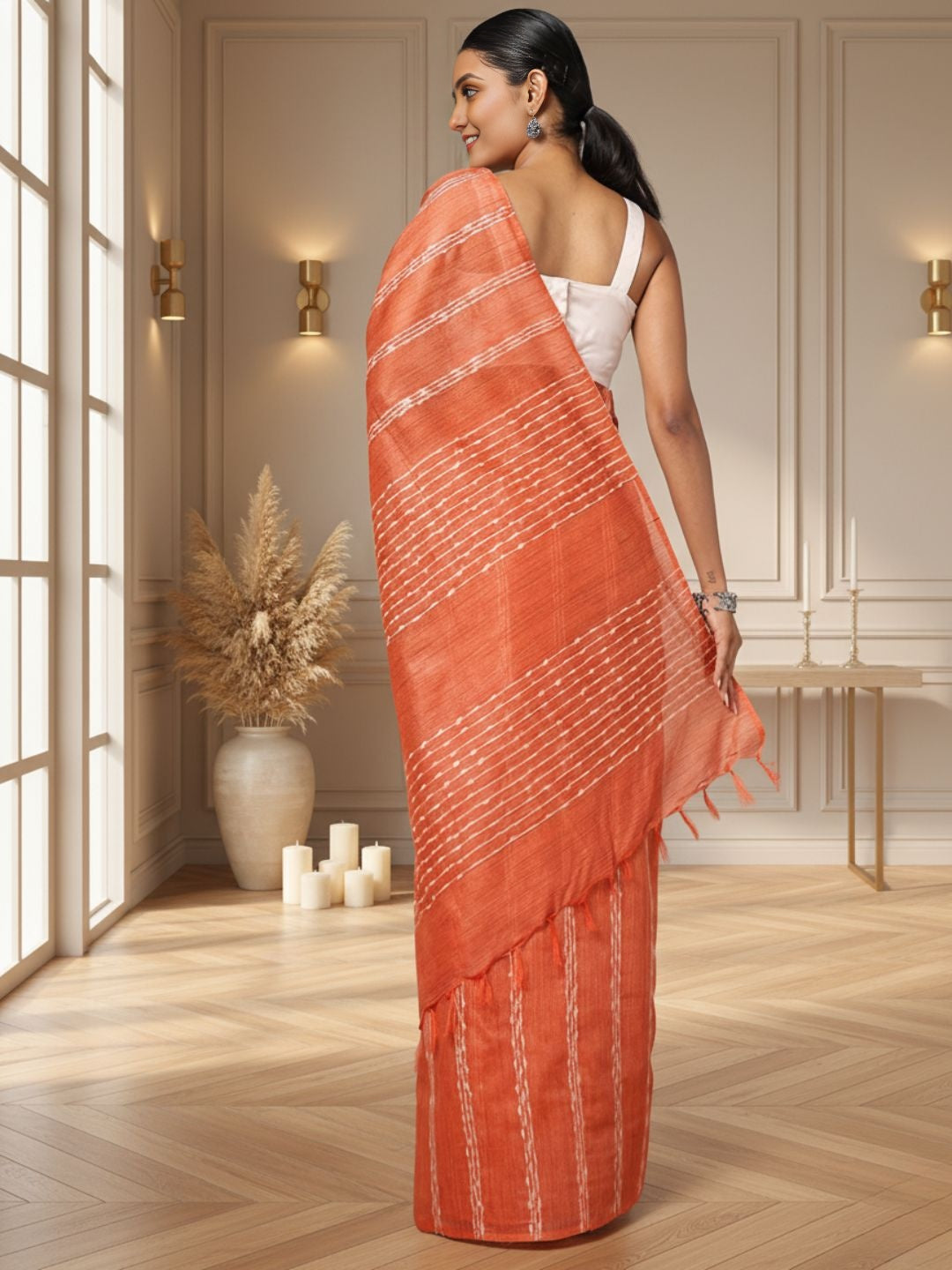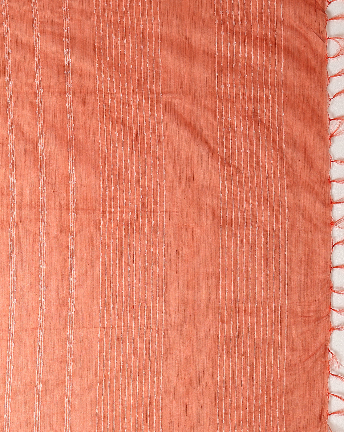 Bansbara Tussar Silk Kantha Handloom Saree Tacao Orange