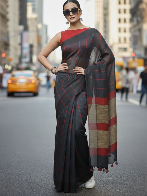 3. What are the characteristics of a Pure Linen Saree with Striped Design?
