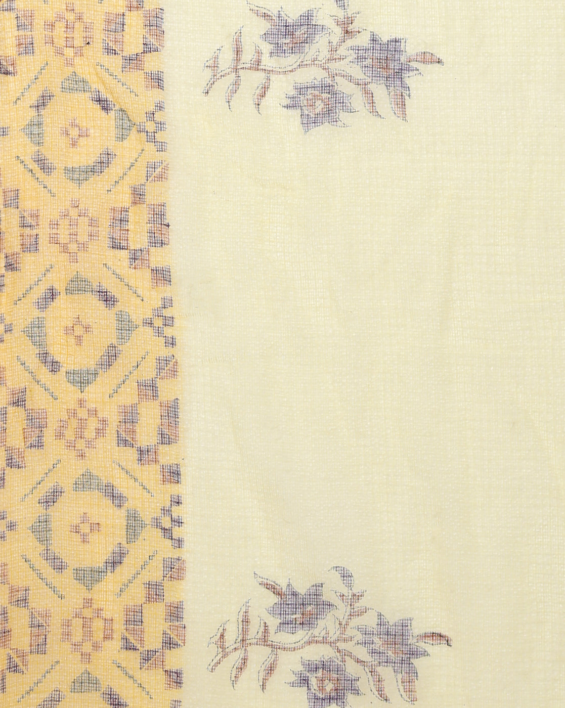 Kota Doria is a sheer fabric made from cotton or silk-cotton blend, characterized by its distinctive square-checkered pattern. It is traditionally woven in Kota, Rajasthan, using a special weaving technique that imparts a translucent quality to the fabric.