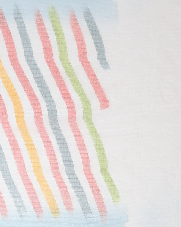 A Cotton Kota Doria Cross Striped Saree is a traditional Indian saree crafted from Kota Doria fabric featuring cross-striped patterns. The saree showcases a unique design with intersecting stripes, adding visual interest and elegance.