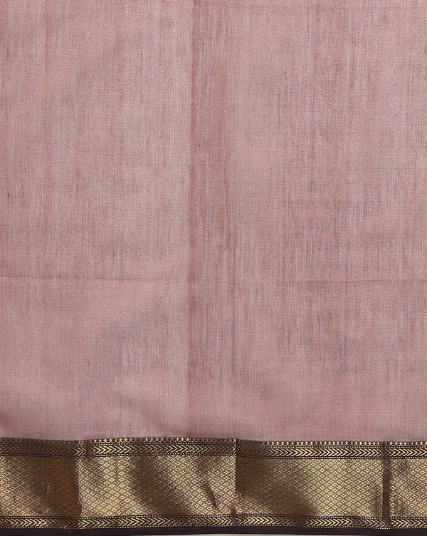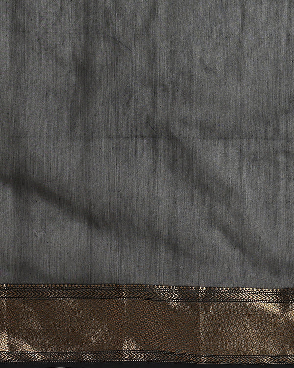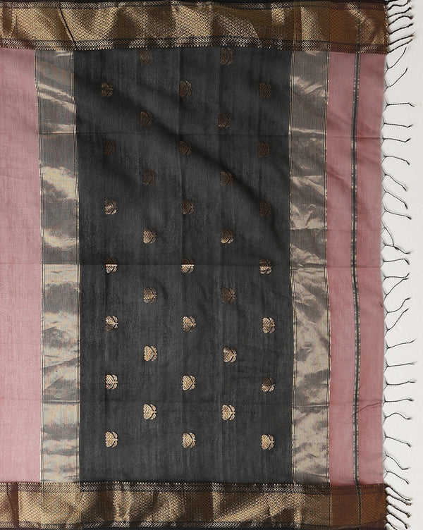 The zari border of the Maheshwari Silk Saree is skillfully woven along the edges, featuring metallic threadwork that enhances the saree's aesthetic appeal. The combination of zari border and flower buti work creates a captivating contrast.