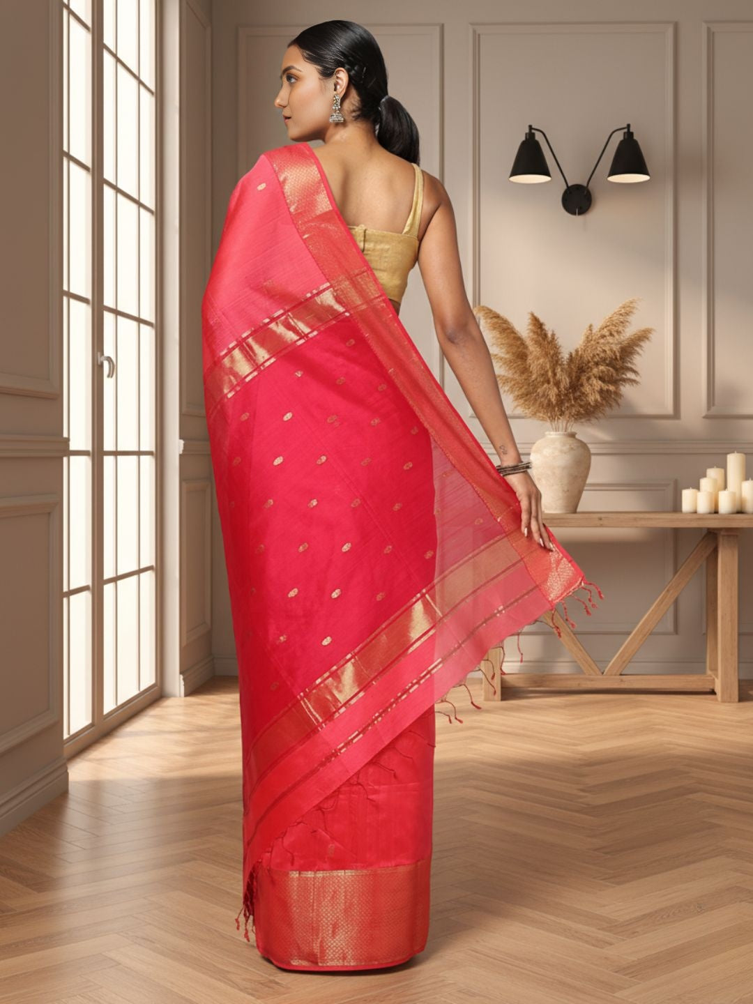 This Maheshwari Silk Saree is perfect for various occasions, including weddings, festivals, and cultural events. Its timeless design and intricate details make it an excellent choice for celebrating special moments.