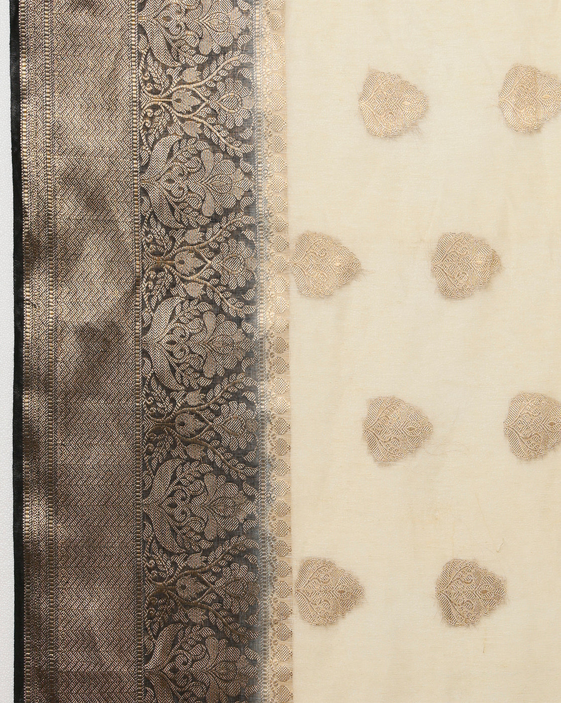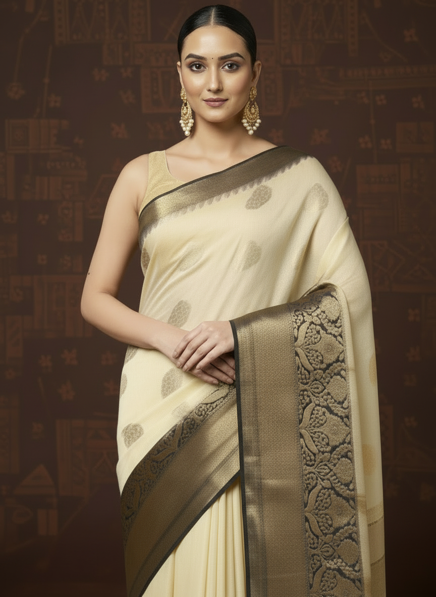 Decorous Banarasi Silk Linen Cream Handloom Saree