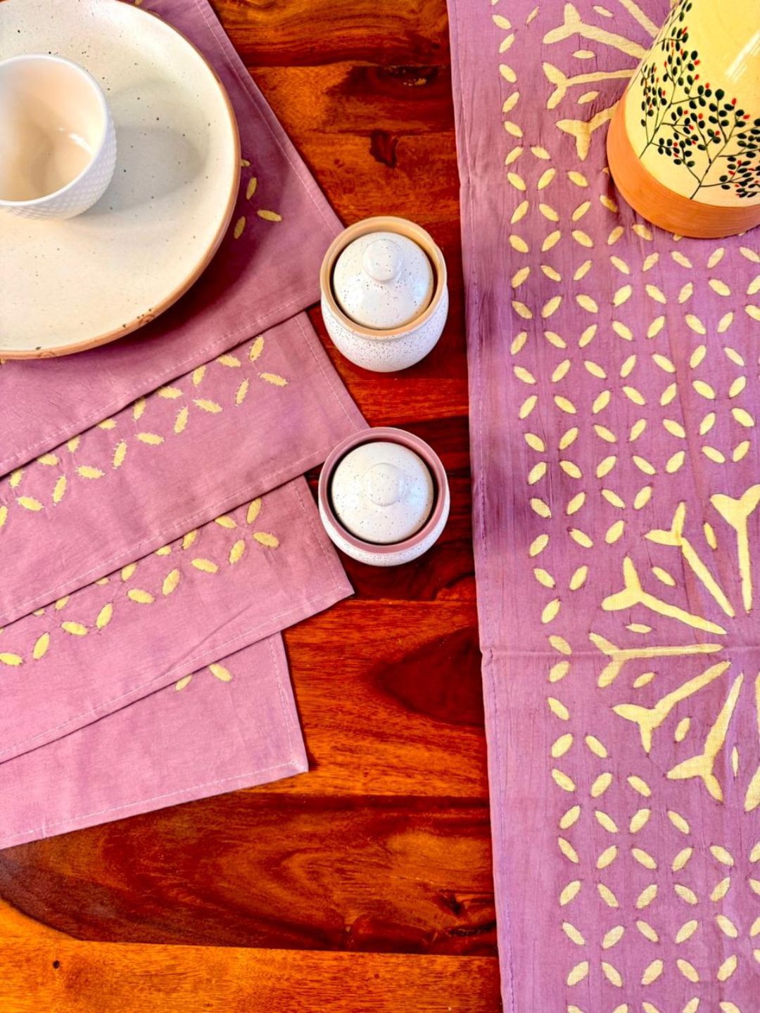 Aavaran Applique Cotton Table Runner & Mat Set Lavendar