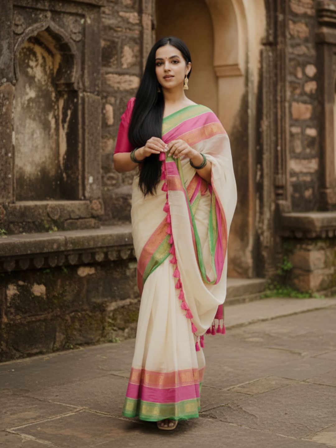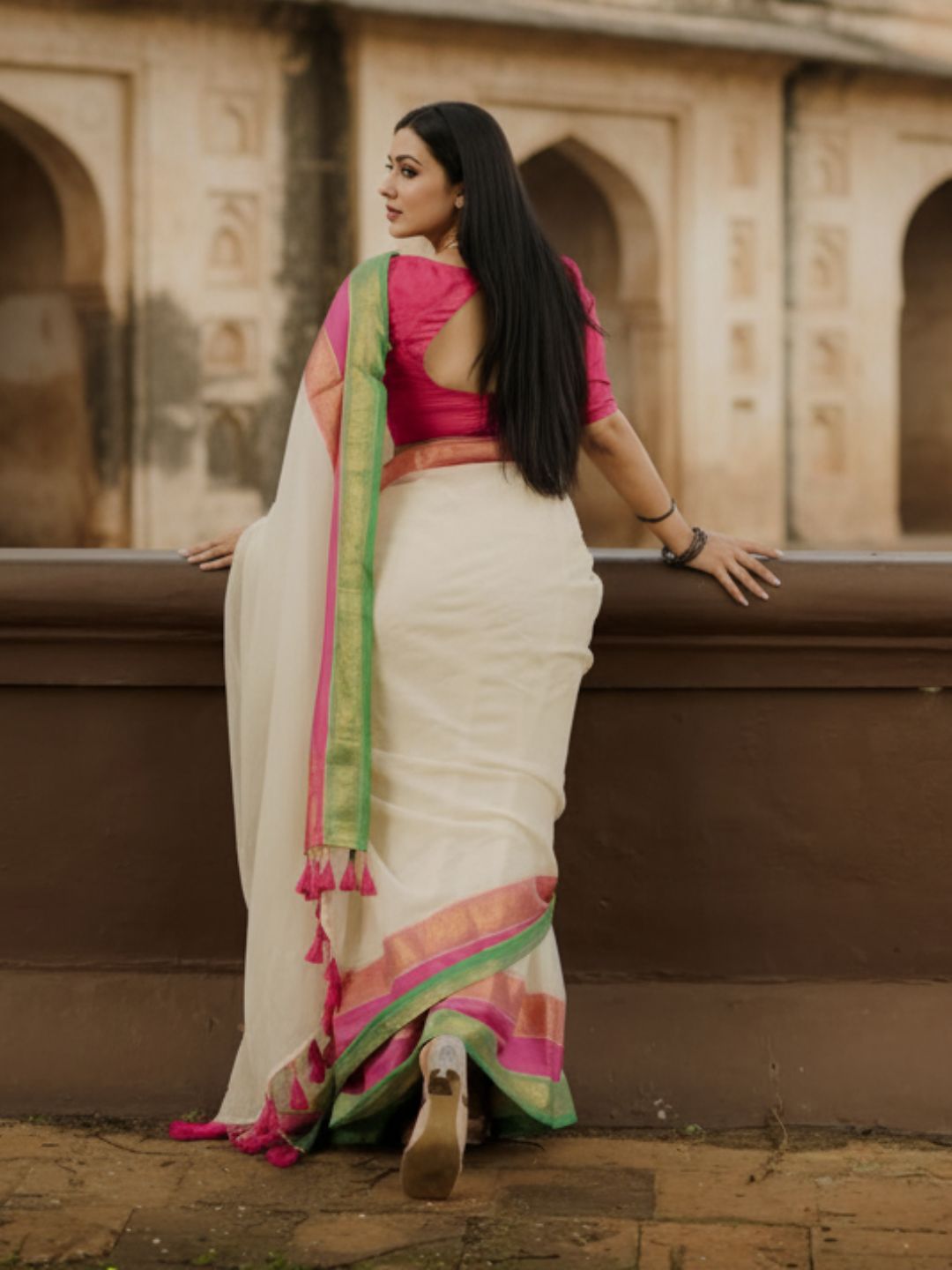 Yes, definitely! The saree’s breathable fabric and minimalist handwoven beauty make it perfect for casual wear, office attire, daytime outings, and cultural gatherings. Pair it with simple accessories for an effortlessly elegant look.