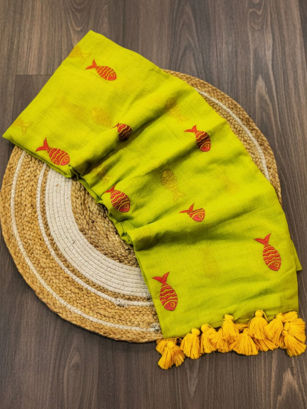 Buti Baani Mul Cotton Handloom Saree Lemon
