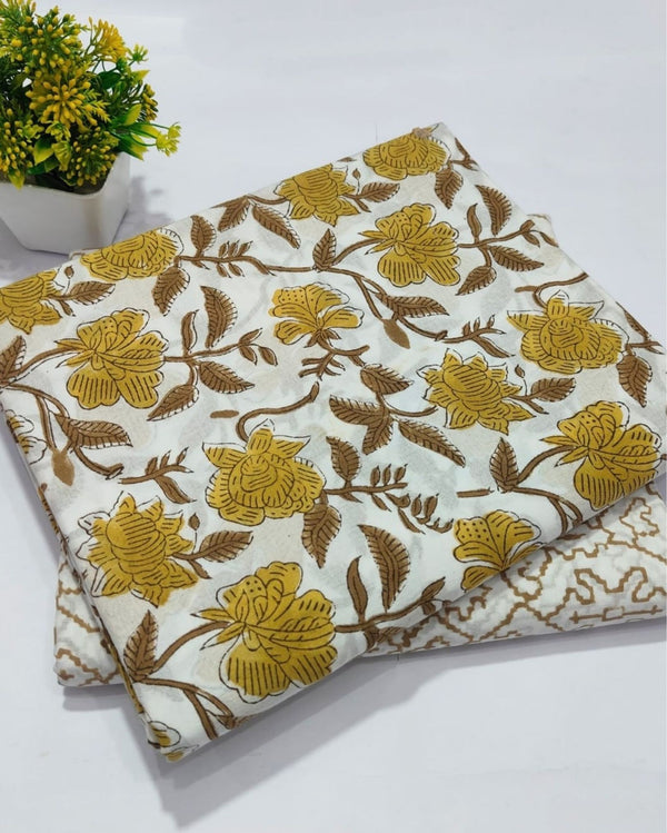 - The Blockprinted unstitched Suit Piece is crafted from high-quality cotton fabric, known for its comfort, breathability, and durability.