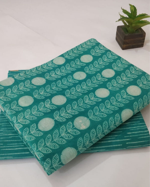 Chaap Pure Cotton Lush Green Blockprinted Suit (Top & Bottom)