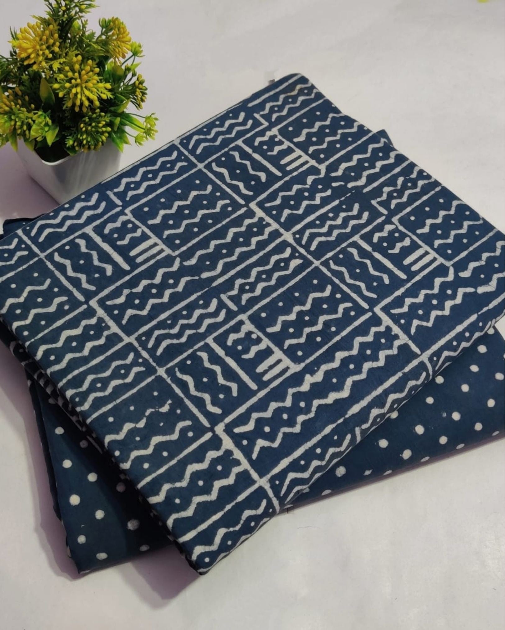 - The Blockprinted unstitched Suit Piece is crafted from high-quality cotton fabric, known for its comfort, breathability, and durability.