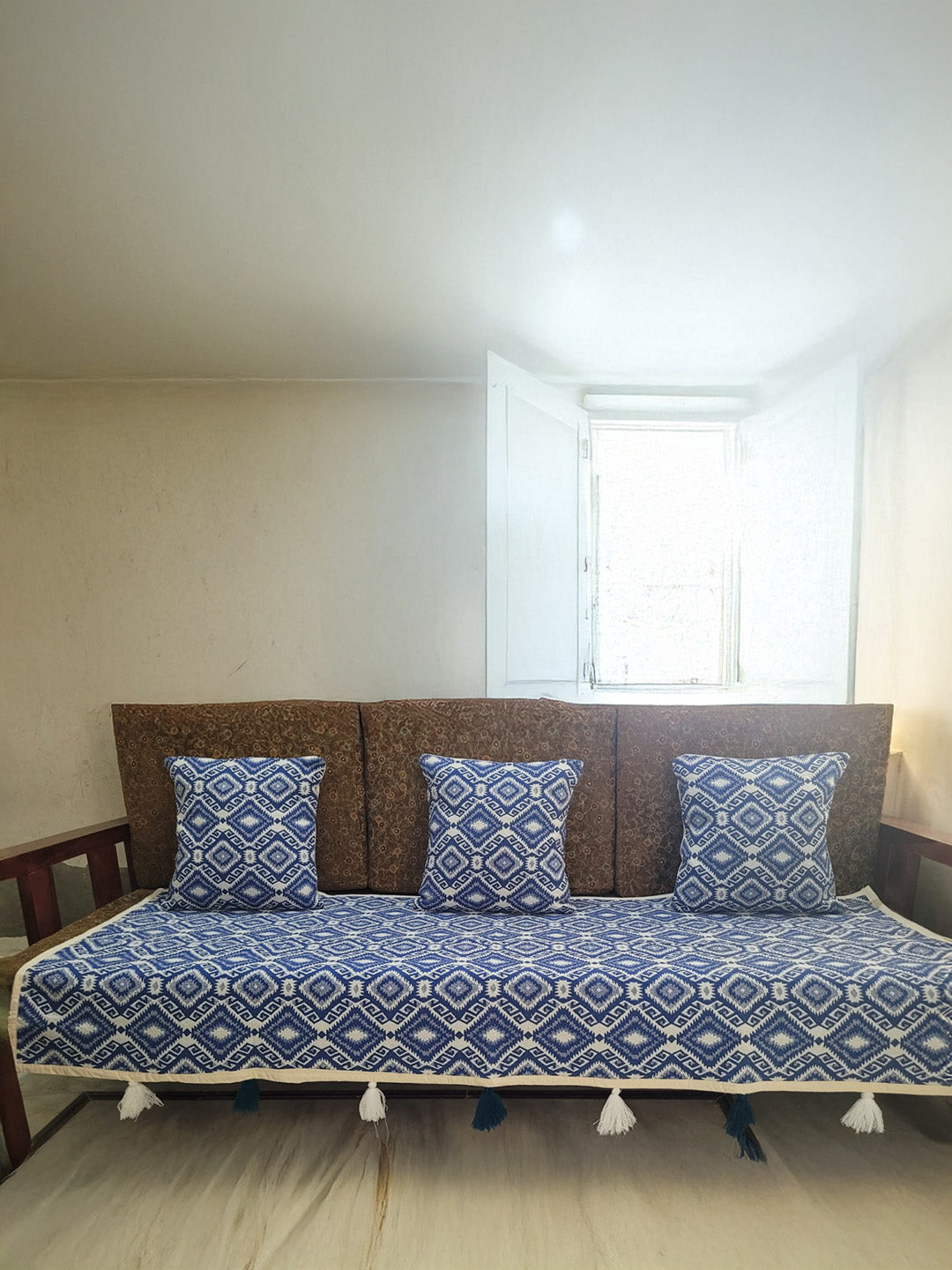 3-Seater Set: Includes 1 piece three-seater sofa throw + 3 cushion covers.