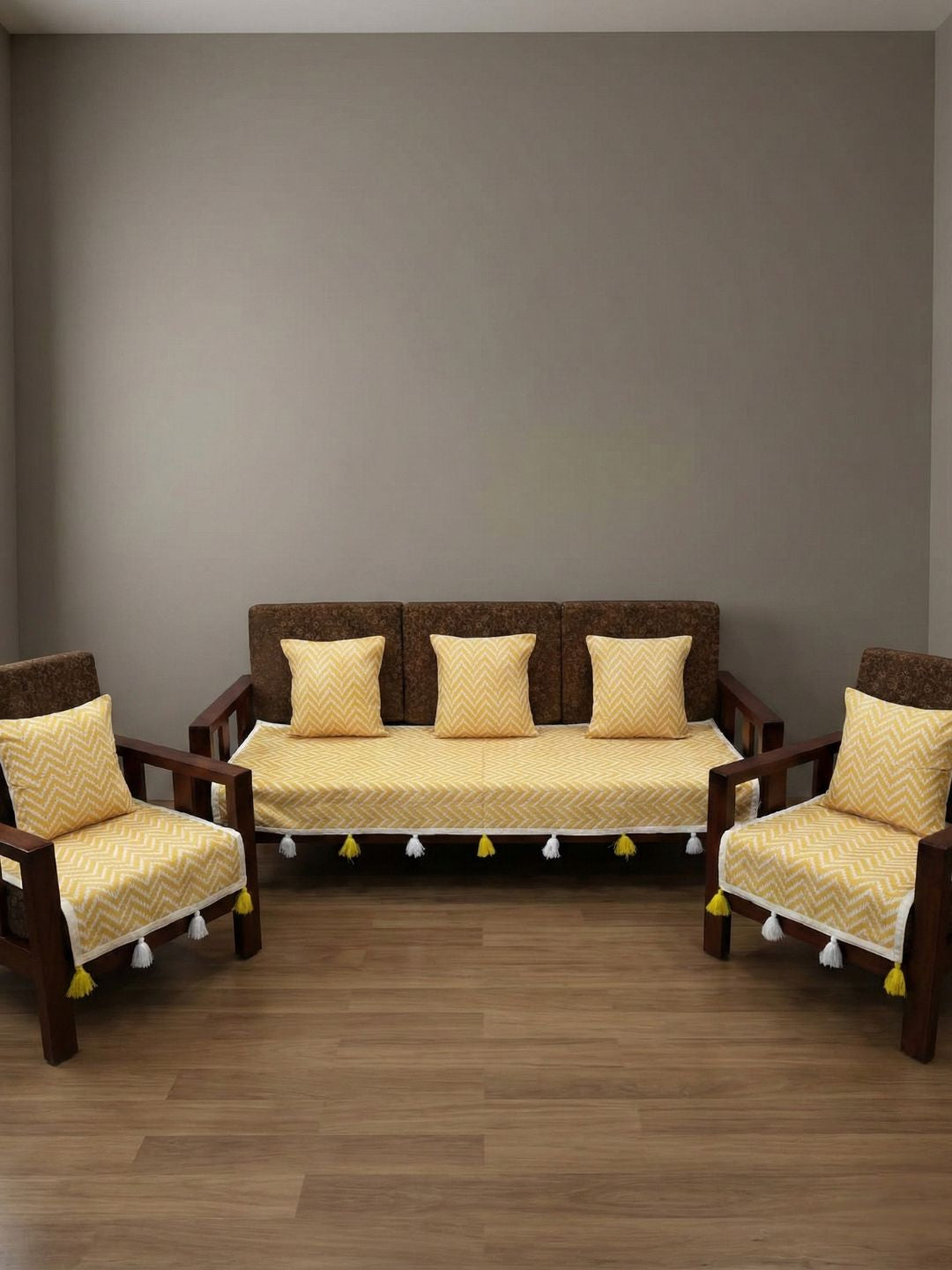 5-Seater Set: Includes 1 piece three-seater sofa throw + 2 single-seater sofa throws (3+1+1) + 5 cushion covers.