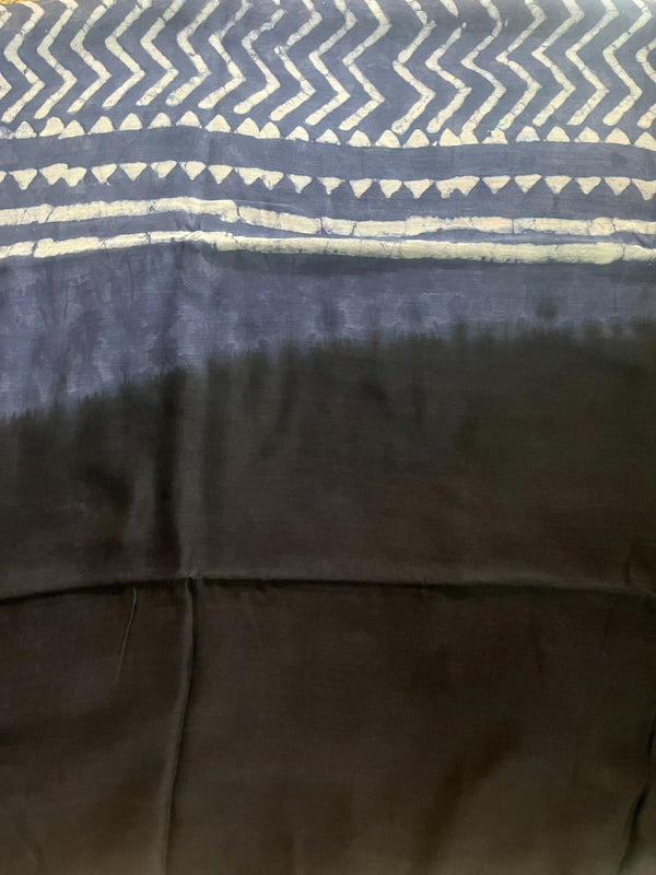This Maheshwari Silk Saree features exquisite hand block printing, a traditional art form where skilled artisans use wooden blocks to stamp intricate designs onto the fabric. The saree embodies elegance and cultural heritage.