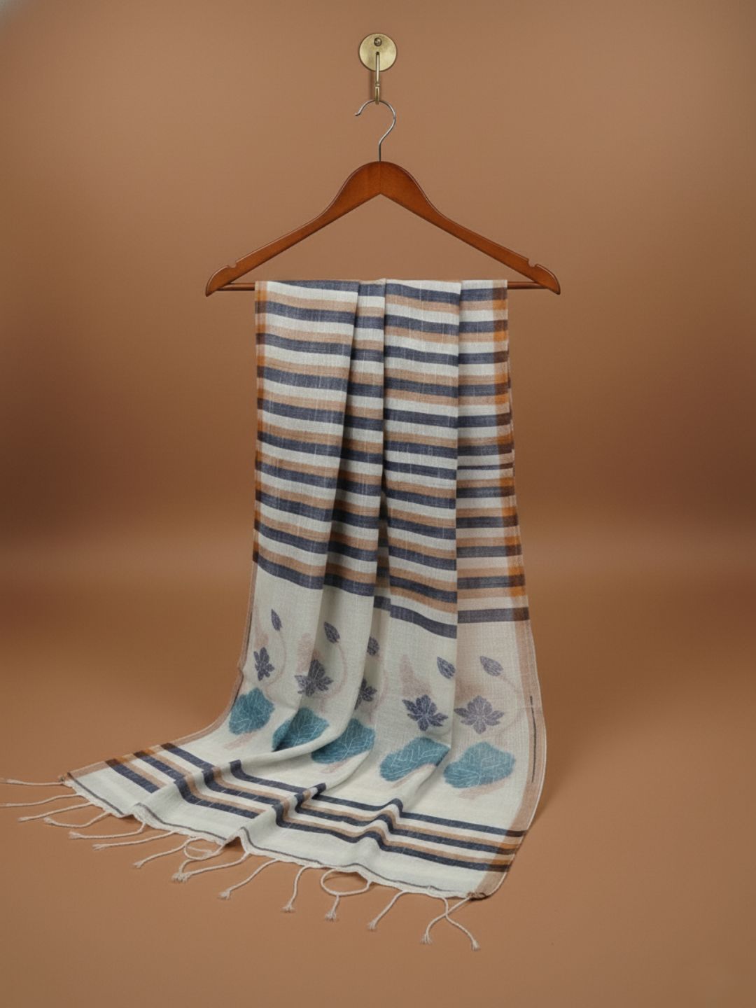 Exquisite pure linen by linen handloom saree featuring intricate all-over hand weaving work. Lightweight, breathable, and elegant — perfect for festive occasions, casual gatherings, or sophisticated everyday wear.