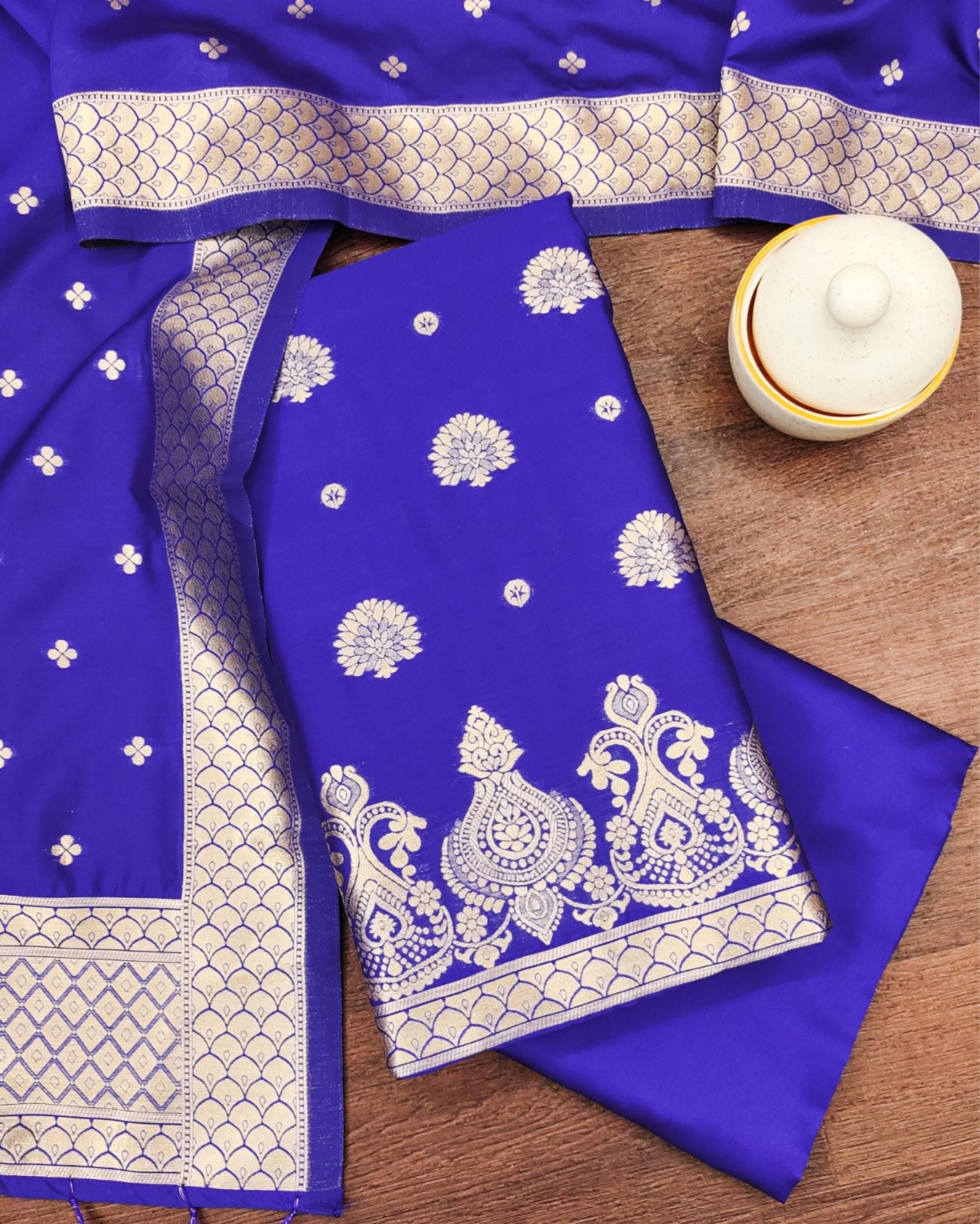 Noor-e-Banaras Brocade Lichi Silk Royal Blue Suit