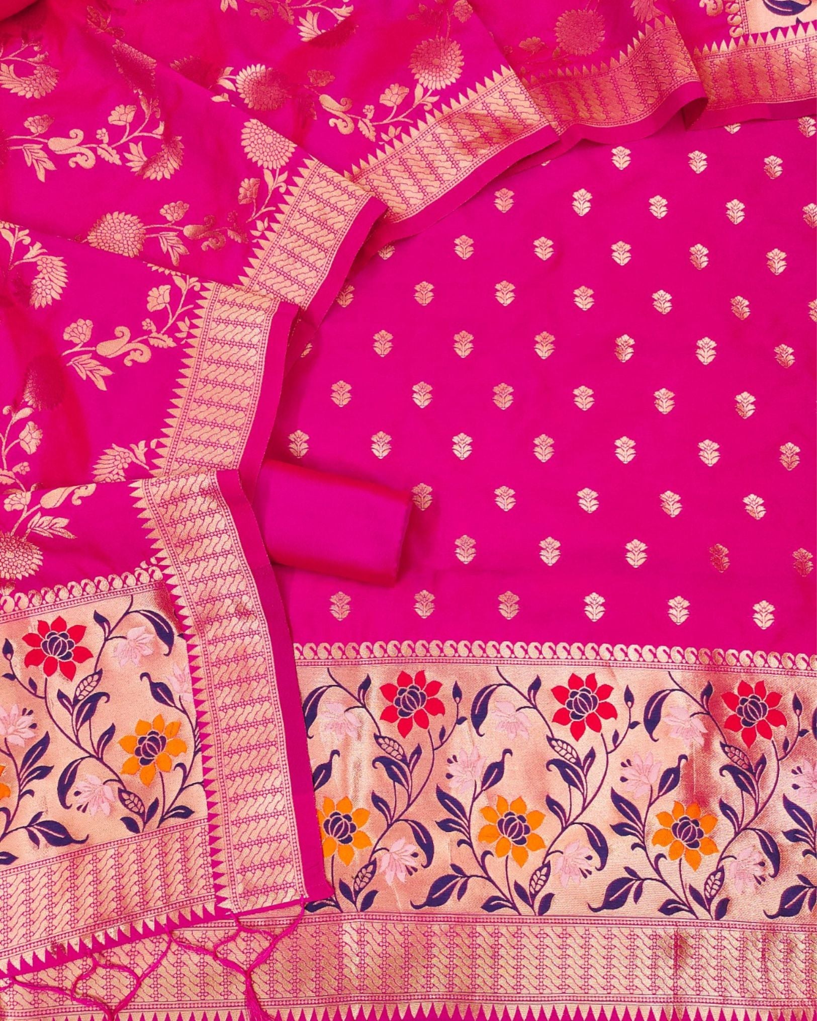 Noor-e-Banaras Brocade Weaving Lichi Silk Chic Pink Suit