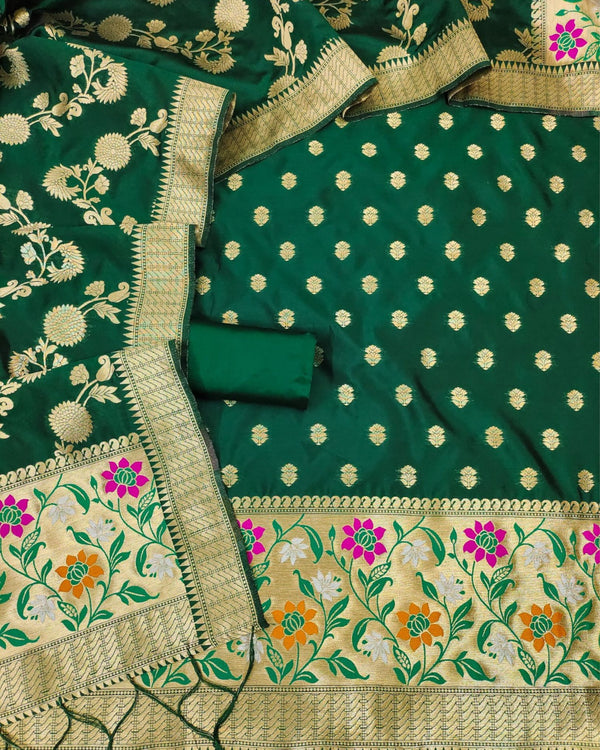 Noor-e-Banaras Brocade Weaving Lichi Silk Green Suit