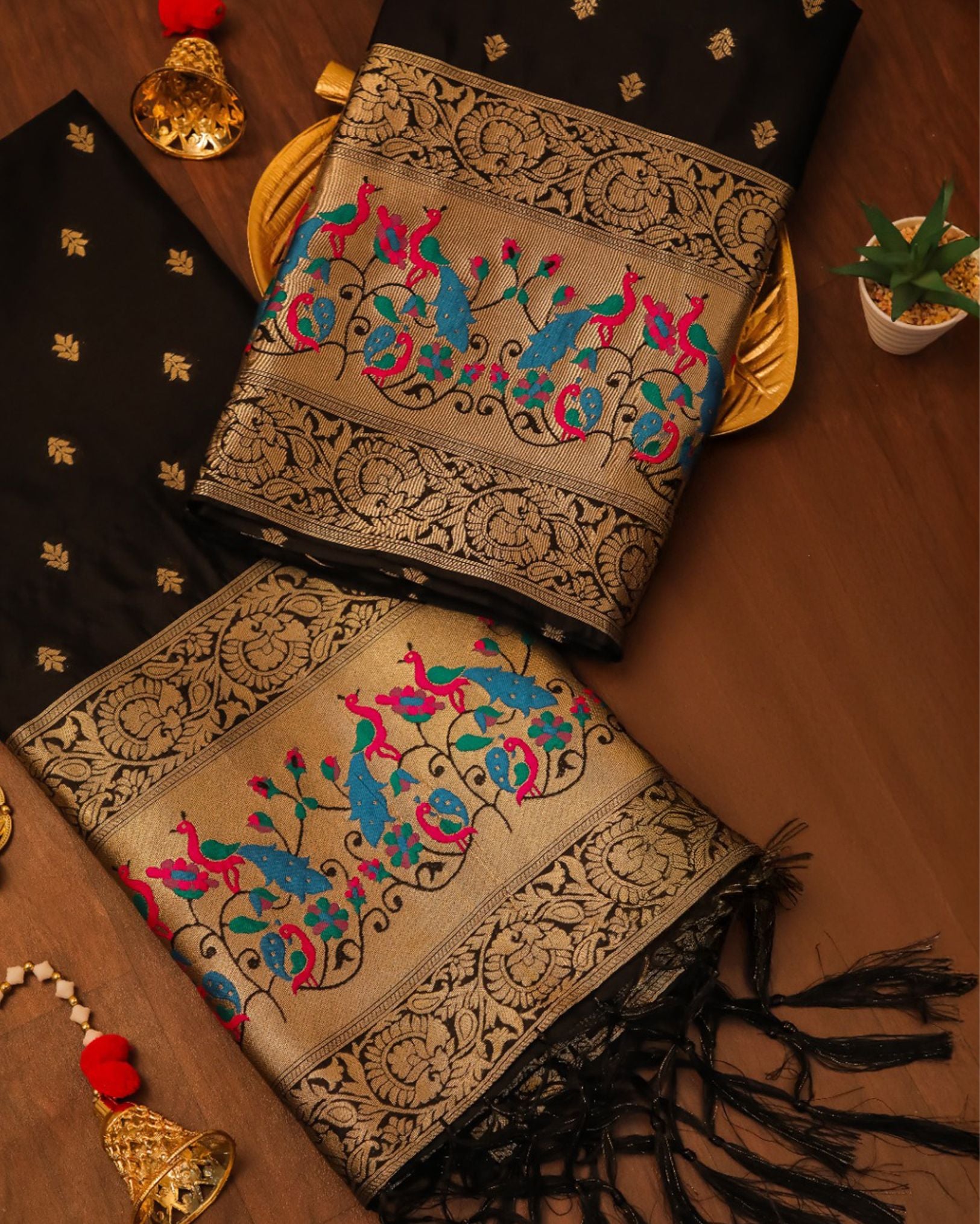Noor-e-Banaras Lichi Silk Brocade Black Suit