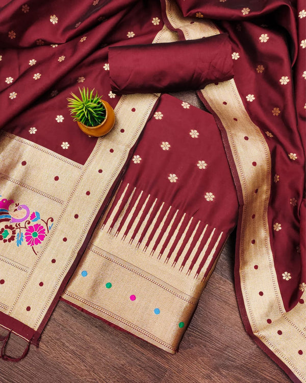 Noor-e-Banaras Lichi Silk Brocade Suit Maroon