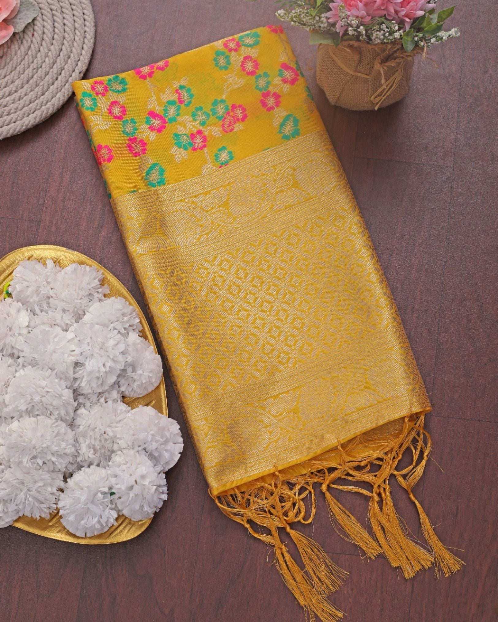 Noor-e-Banaras Lichi Silk Brocade Yellow Dupatta