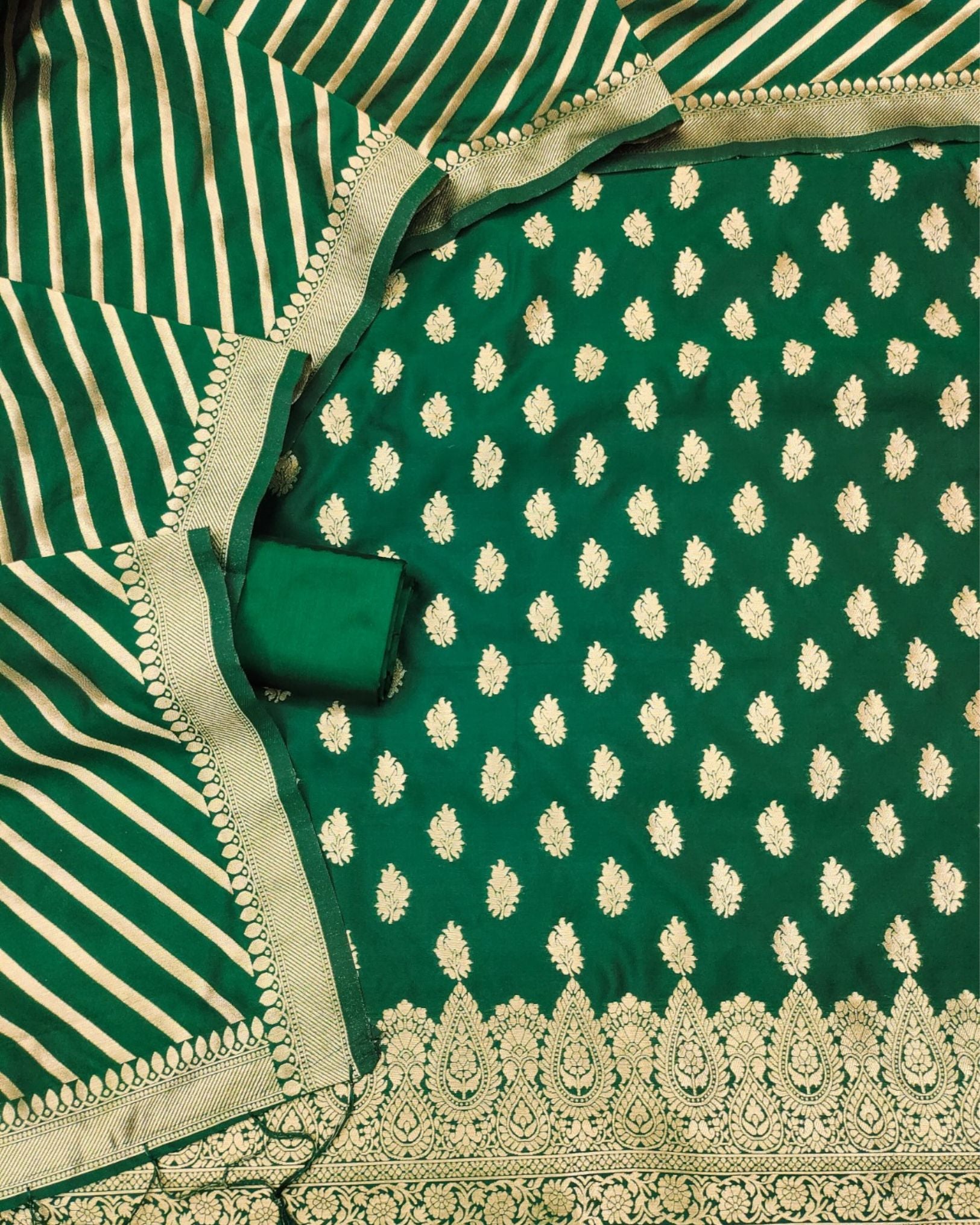 Noor-e-Banaras Lichi Silk Emerald Green Suit Brocade Weaving