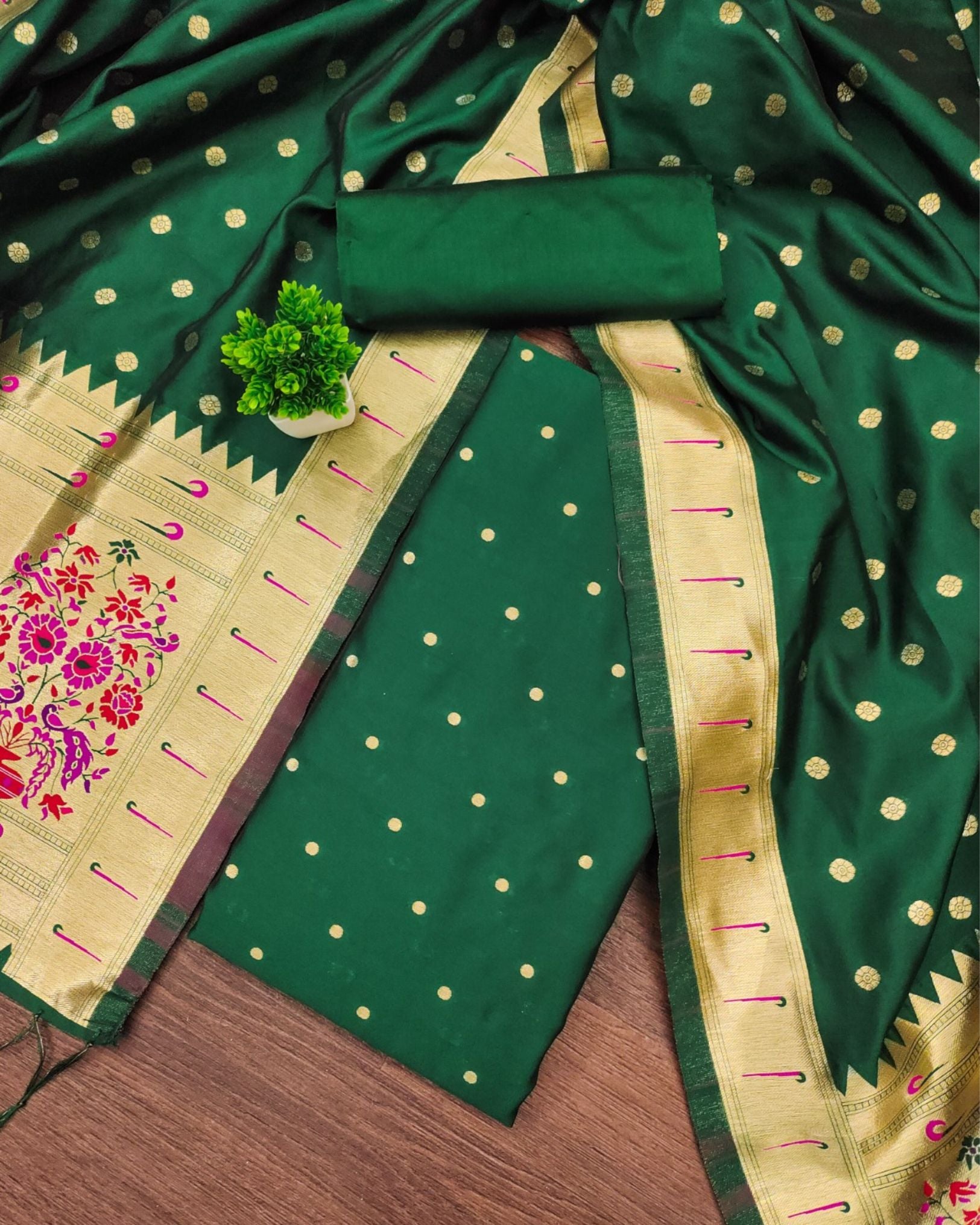 Zari Sutra Maheshwari Silk Teal Green Suit