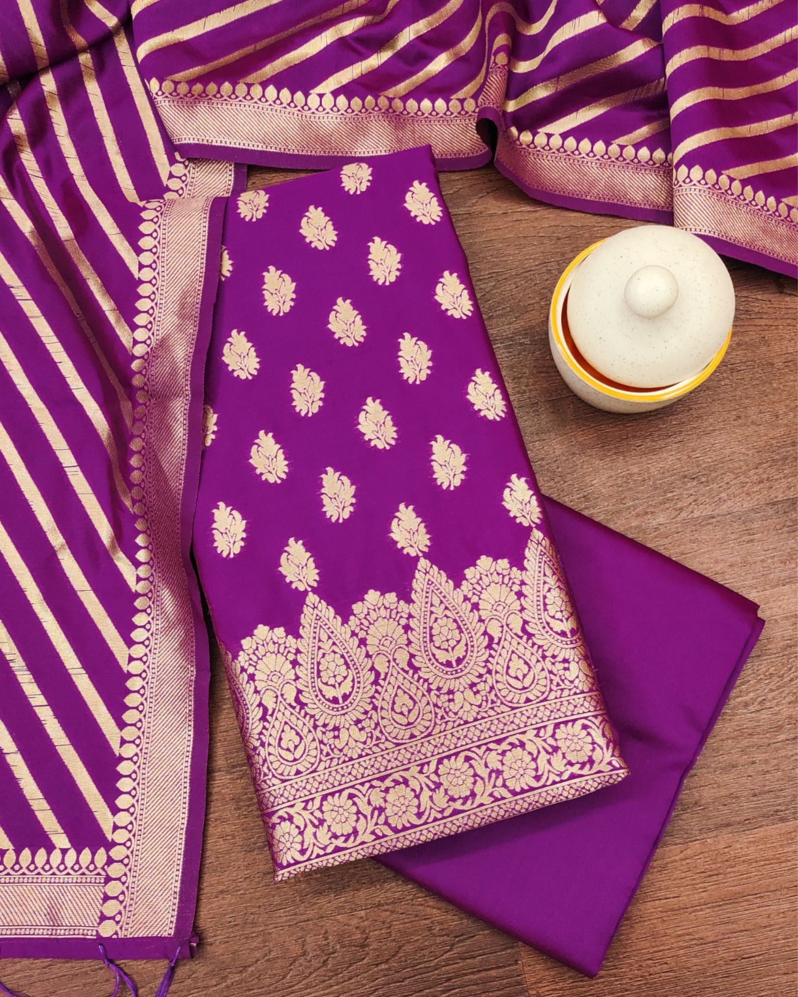 Noor-e-Banaras Lichi Silk Purple Suit Brocade Weaving