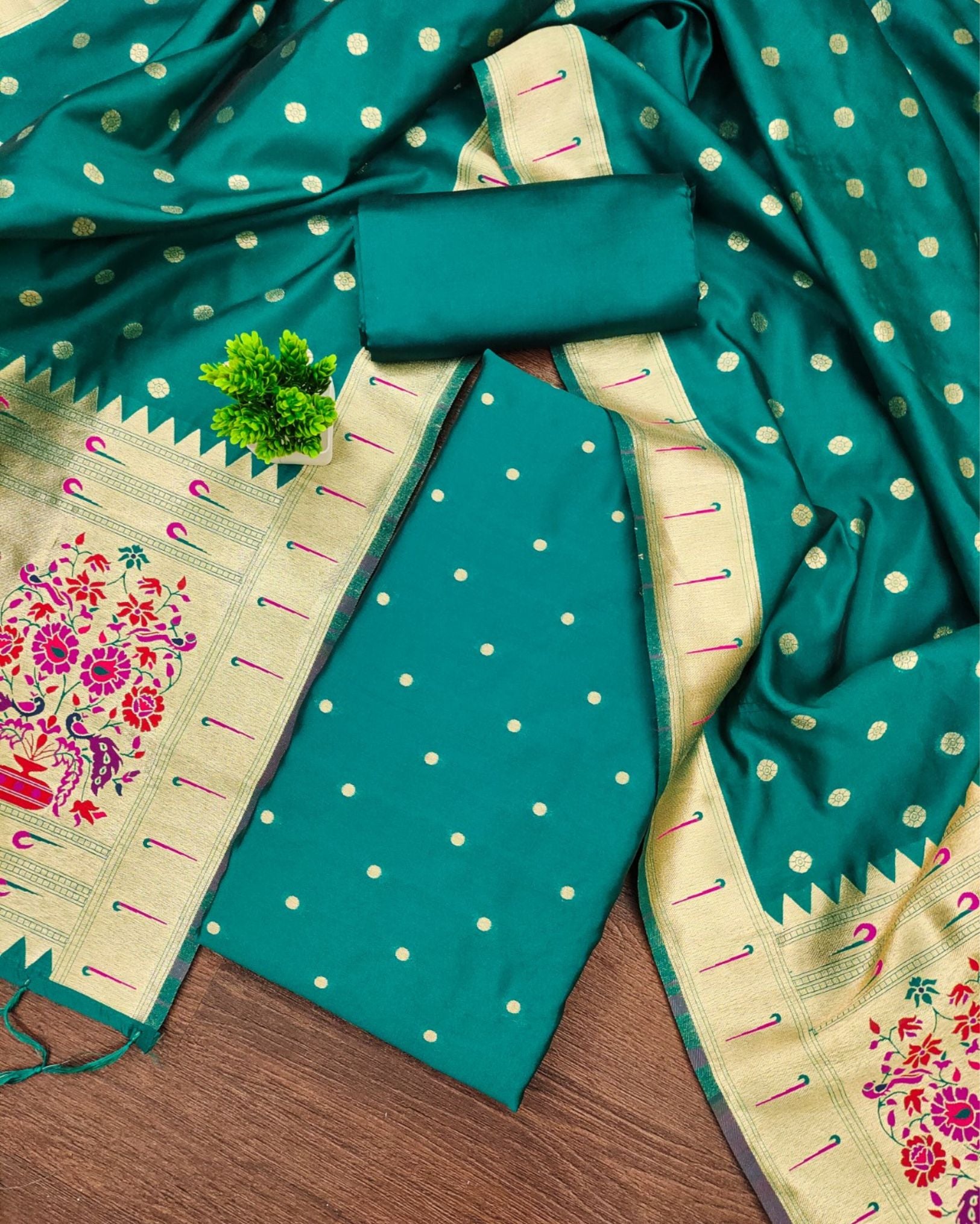 Elevate your ethnic charm with our Banarasi Lichi Silk Suit featuring exquisite brocade weaving. ... Read more
