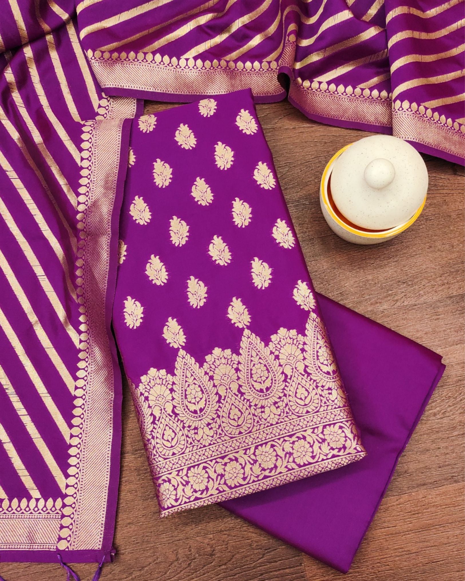 Noor-e-Banaras Lichi Silk Violet Suit Brocade Weaving