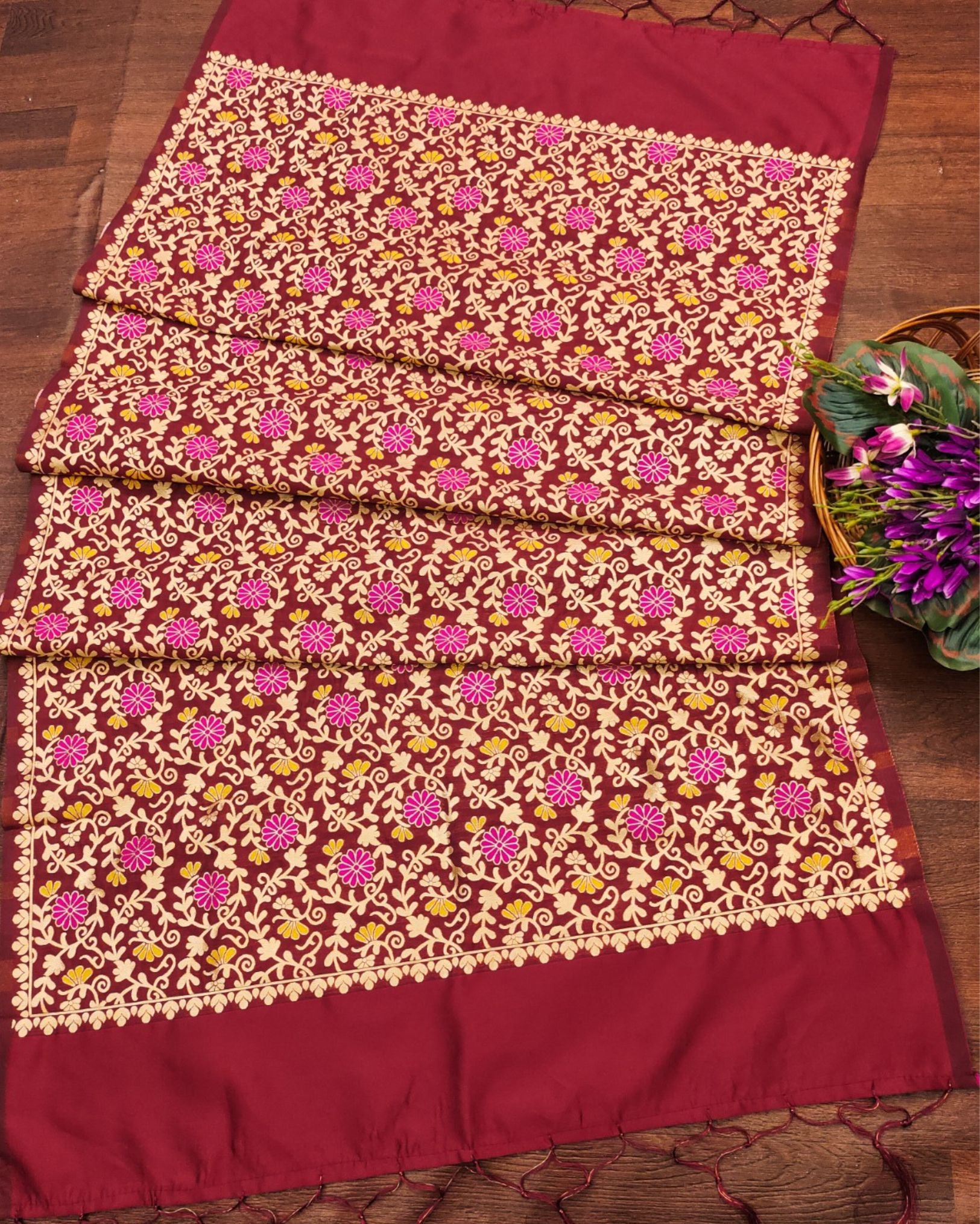 Noor-e-Banaras Silk Dupatta Maroon Brocade Weaving