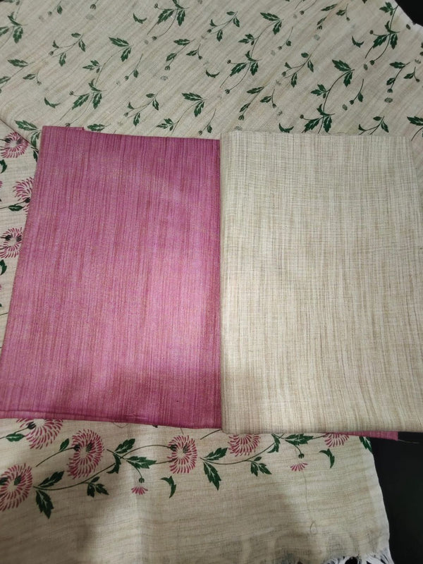Pure Madhubani Khadi Cotton Suit Beige & Rose Pink
