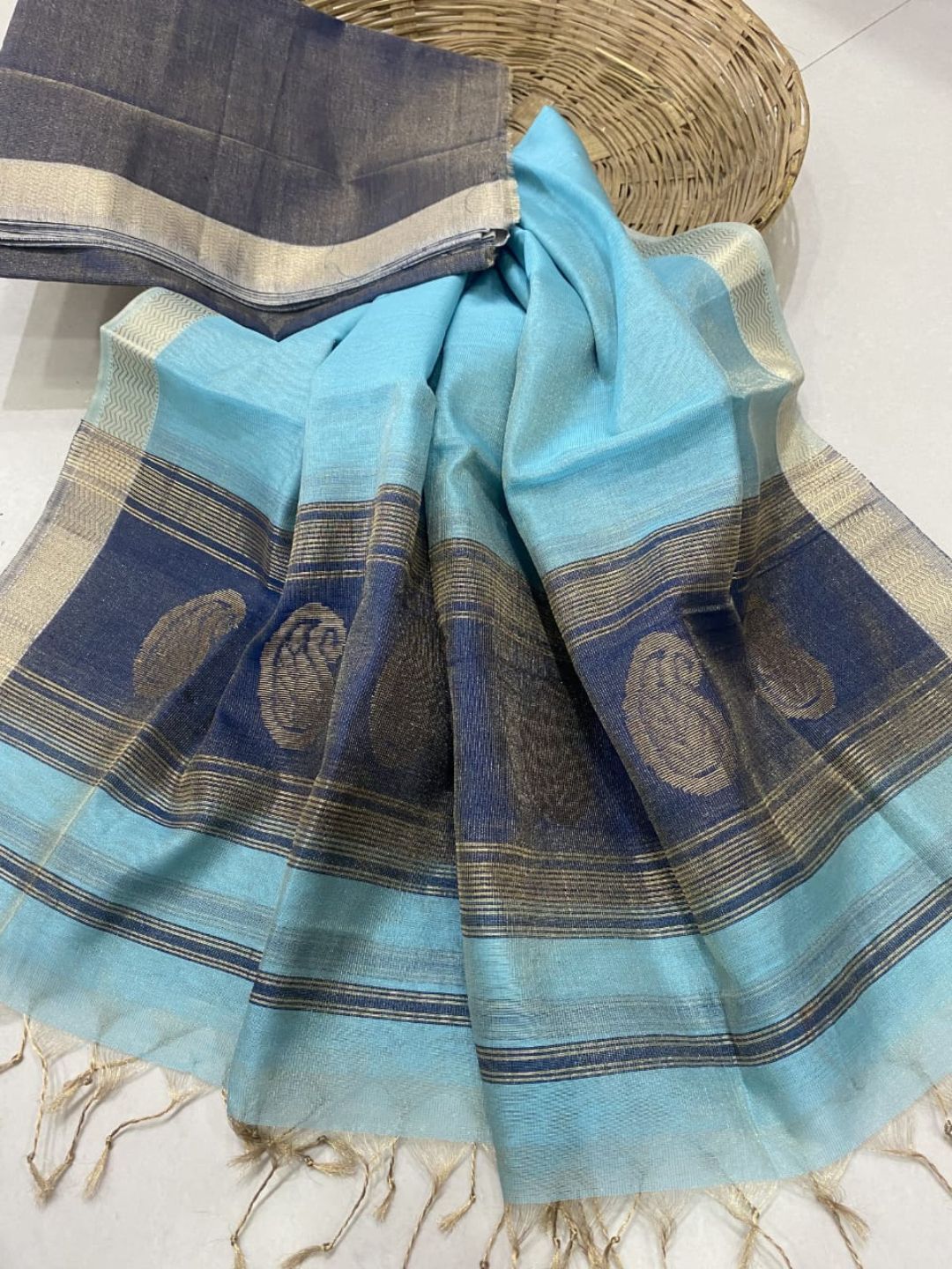 Zari Sutra Calm Blue Maheshwari Silk Sui