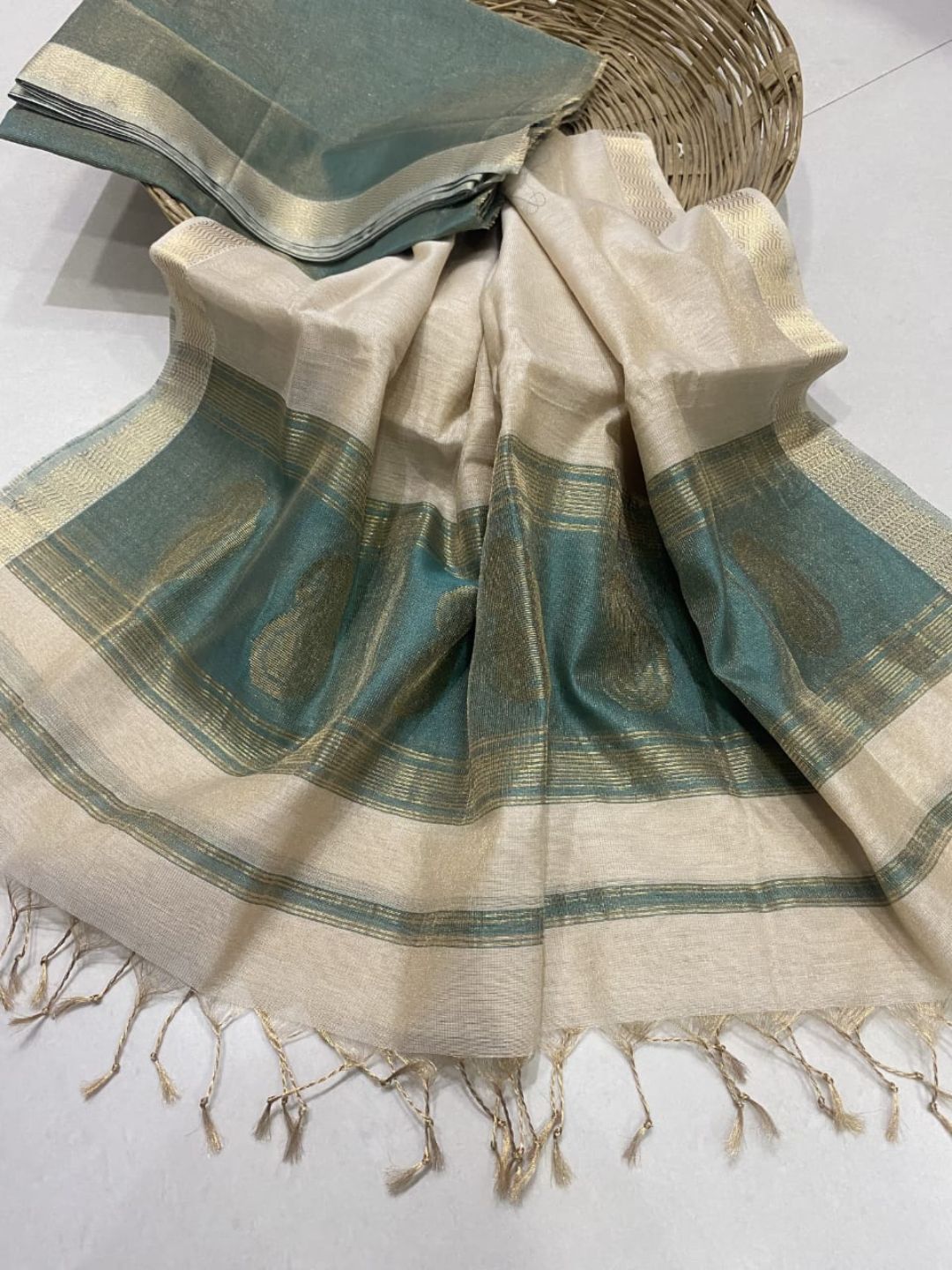 Zari Sutra Maheshwari Silk Teal Green Su