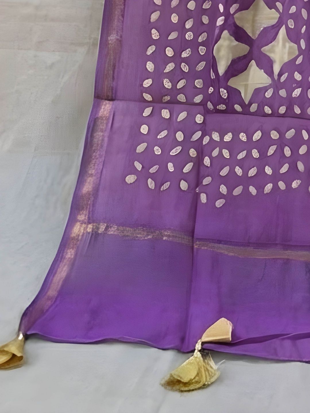 Roop Baani Pure Chanderi Silk Applique Saree Purple
