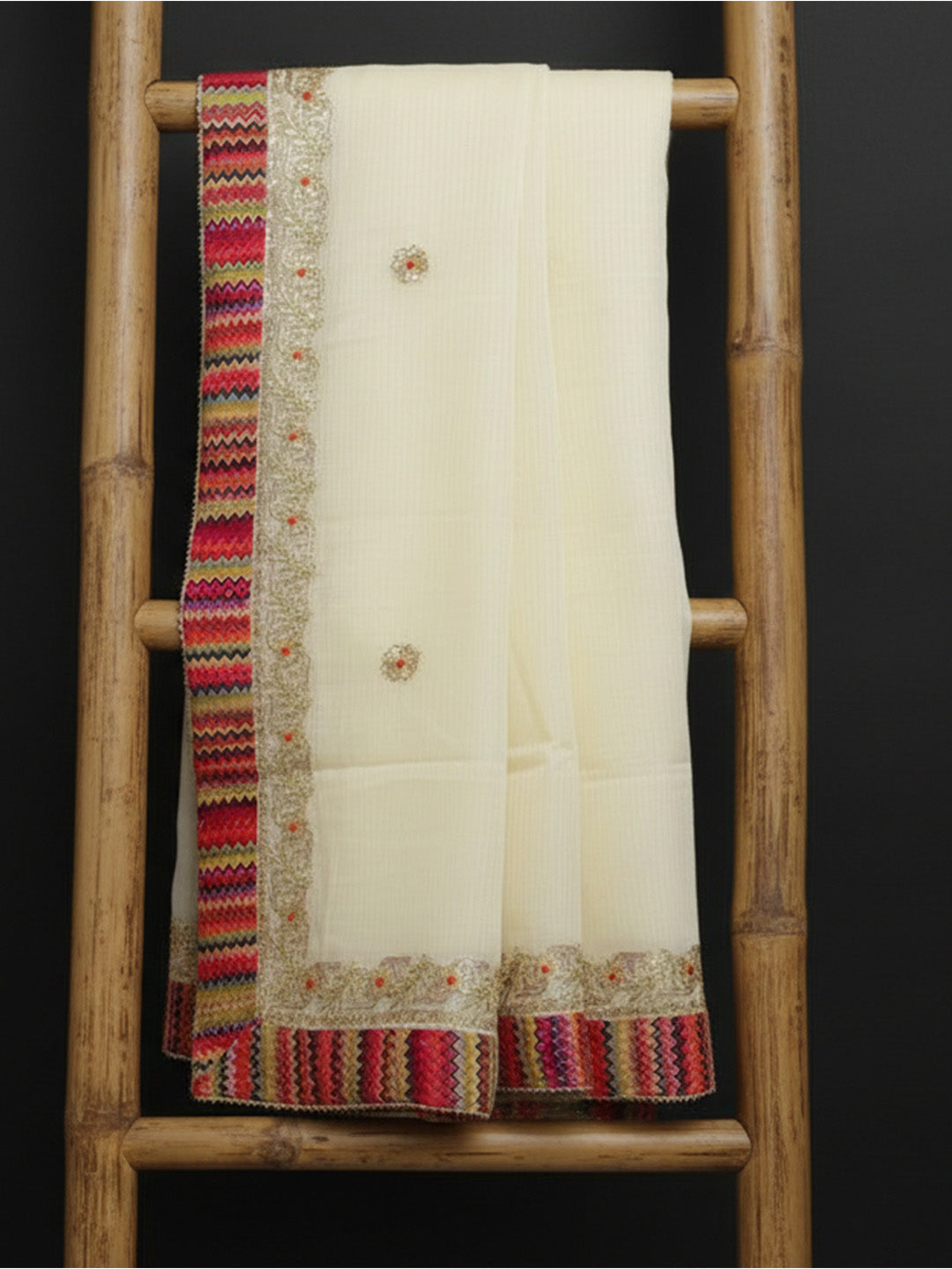 - Iron with Care: Use a low heat setting and iron the saree from the reverse side or place a cloth between the iron and fabric to protect the Kachi Gotta work.