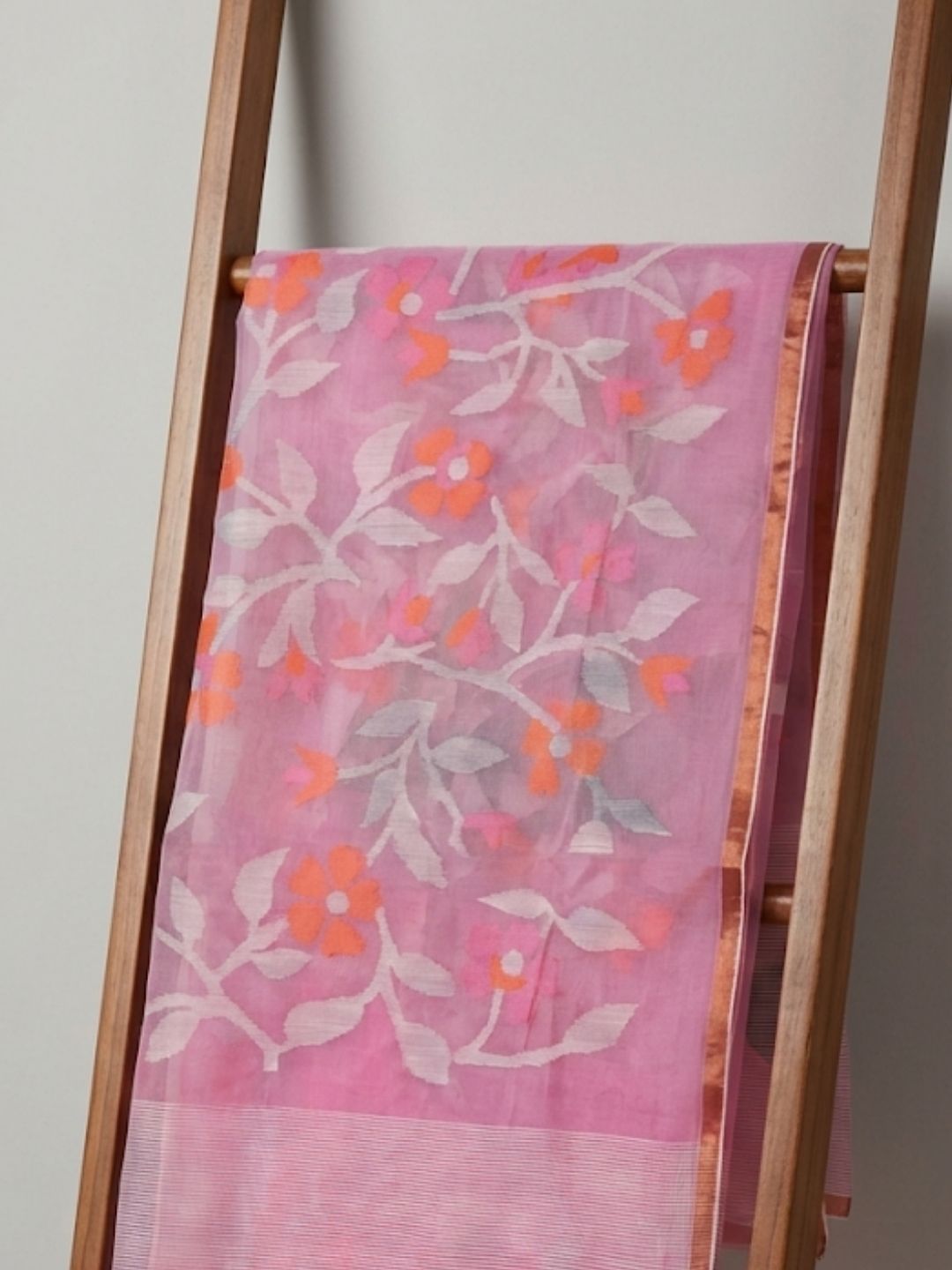 Van Roop Pure Muslin Silk Jamdani Saree Blush Pink