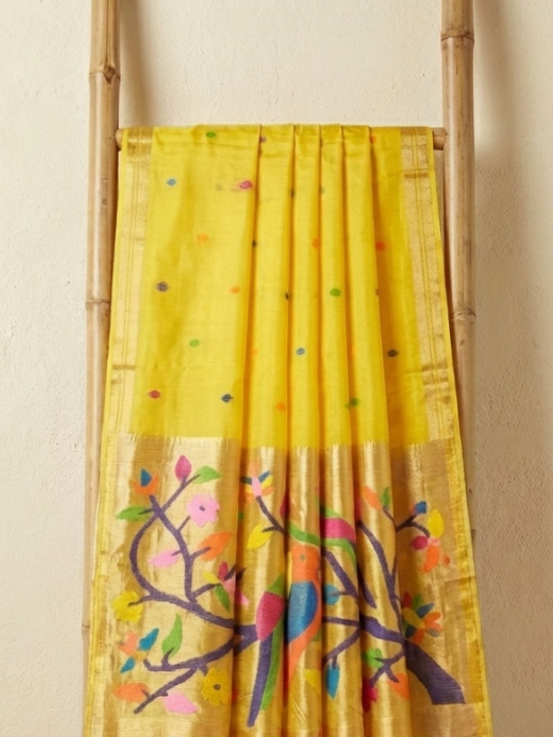 Van Roop Pure Muslin Silk Sequin Saree Bright Yellow