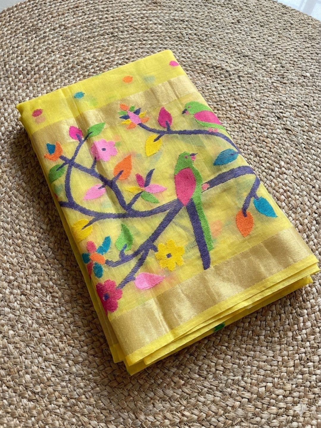 Hawa Hawai Chikankari Pure Mul Cotton Saree Sunny Yellow