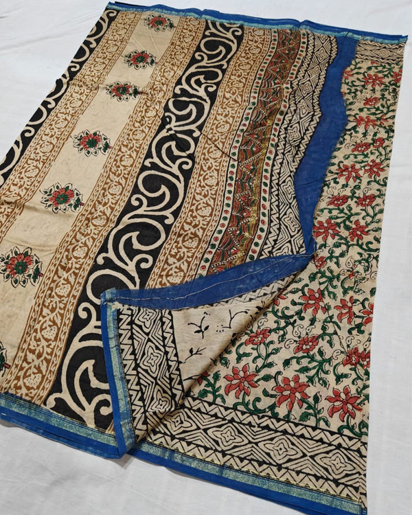 Whispering Petals Kalamkari Chanderi Silk Fair Beige Saree